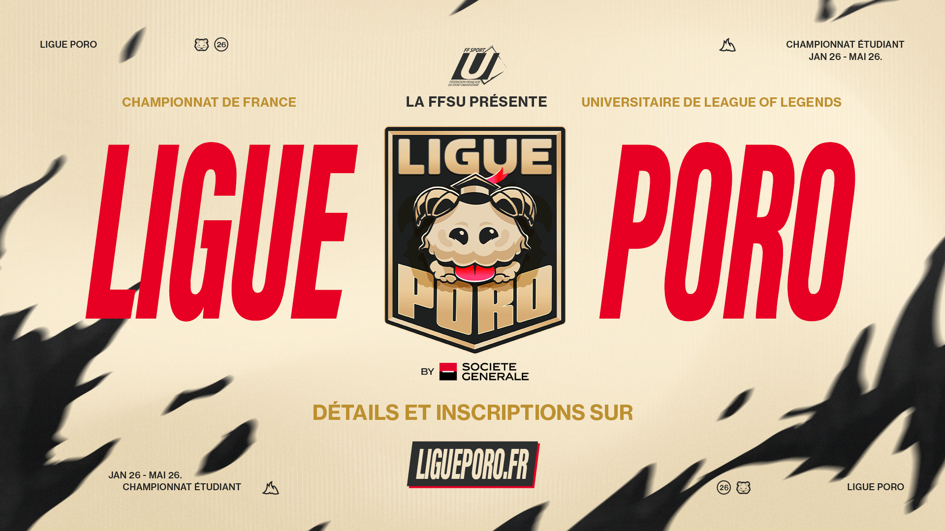 Société Générale et la Fédération Française du Sport Universitaire, soutenus par Riot Games, lancent la Ligue Poro - Championnat de France Universitaire de League of Legends. Le Groupe a souhaité cette année franchir une nouvelle étape dans son engagement pour le développement de l’esport en France et pour la jeunesse, en proposant une expérience inédite dans le prolongement de « l’Académie ».