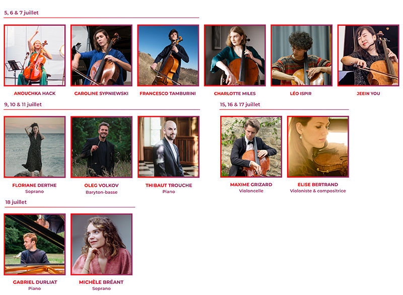 Édition après édition, Un Été en France s’affirme comme une étape clé du parcours artistique de nombreux jeunes musiciens. En 2026, le festival accueille en première partie, conçue en association avec la Cité des Compositrices, de nouveaux talents sélectionnés par les partenaires de la Fondation Société Générale. Anouchka Hack, Caroline Sypniewski, Francesco Tamburini, Charlotte Miles, Léo Ispir, Jeein You, Floriane Derthe, Oleg Volkov, Thibaut Trouche, Maxime Grizard, Elise Bertrand, Gabriel Durliat et Michèle Bréant partageront la scène aux côtés de Gautier Capuçon et d’artistes confirmés.