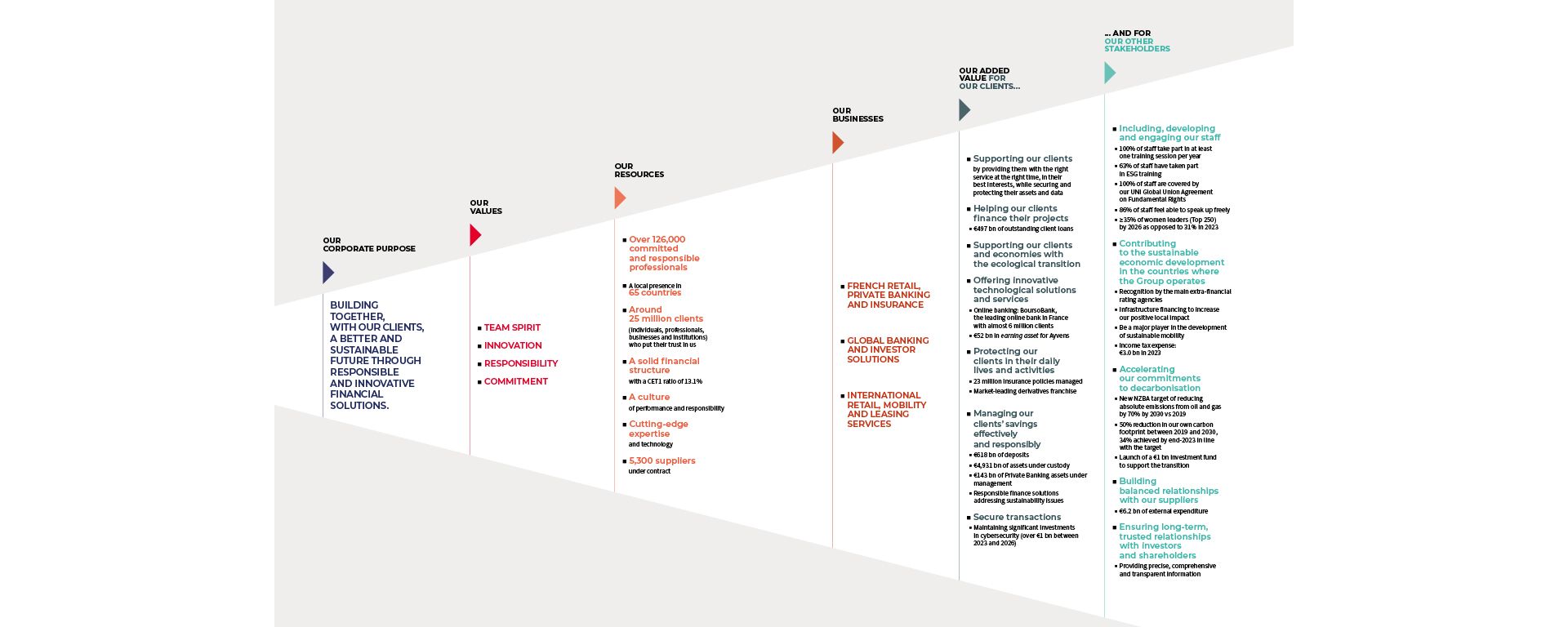 Creating value for our clients, staff and shareholders and having a positive impact on the world around us, this is the meaning we accord to our profession as bankers. Societe Generale's resilient business model is expressed in our corporate purpose in the interests of a better, more sustainable future. Our teams are united by a set of shared values. These fundamentals contribute to Societe Generale group's financial solidity, our dynamic of innovation and our sustainable growth strategy and make us a trusted partner for all of our stakeholders.